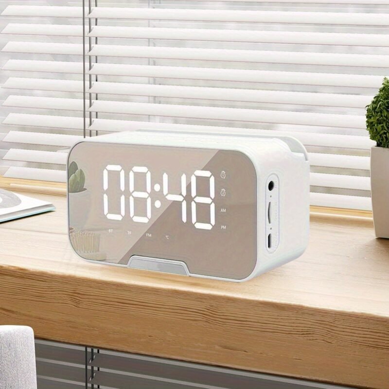 Mini Wireless Portable Speaker with FM Radio, LED Mirror, Mic, TF Card, USB Charge