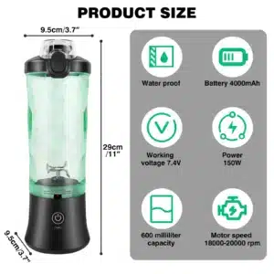 600ml Portable Smoothie Blender, USB Rechargeable Mini Blender for Travel, Powerful Ice Crushing & Large Capacity