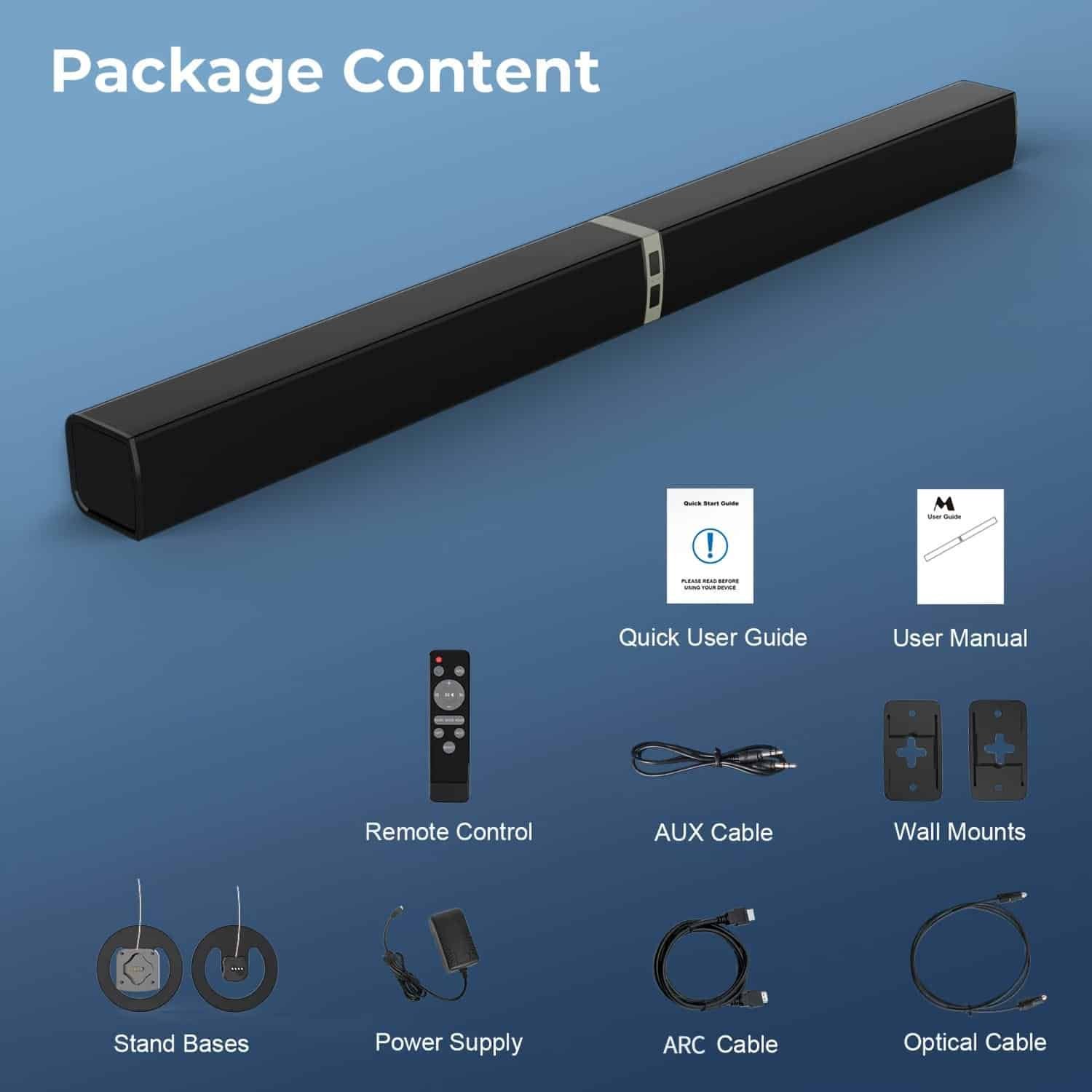 2 IN 1 TV Sound Bar, Sound Bars for Smart TV, 50W Wireless 2.0 Channel Home Audio Sound Bars with ARCu002FOpticalu002FAUX Connection