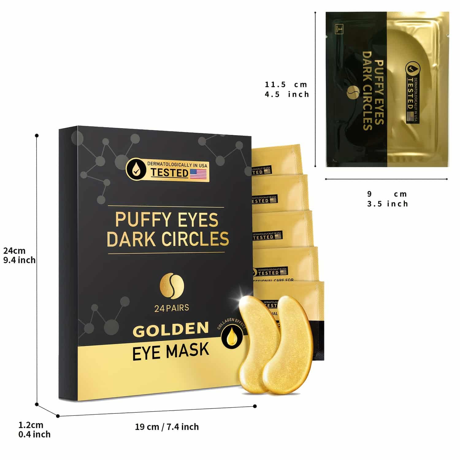 Each patch measures 11.5 cm x 9 cm, designed for comfortable under-eye coverage.