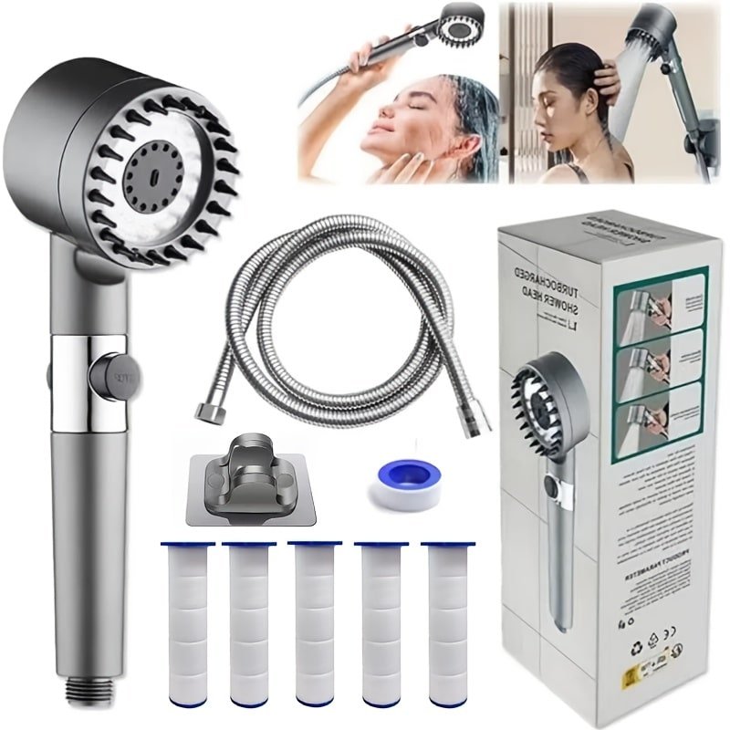 Multi-Setting Shower Head with Filter, Handheld + Wall Mount, Adjustable, Leak-Proof, 5 Filters