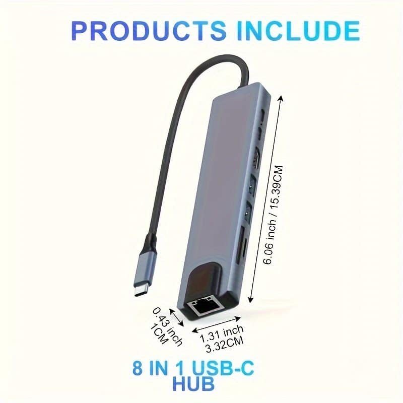 • 8 in 1 Type C Hub :This USB hub adapter offers 8 different ports. making it a versatile tool for all your connectivity needs.